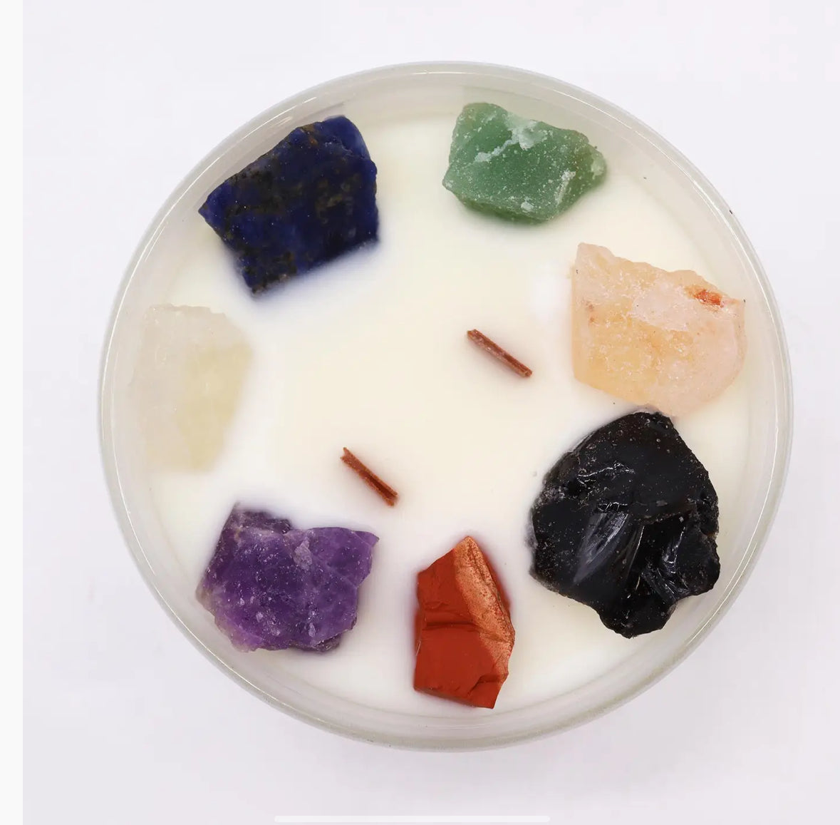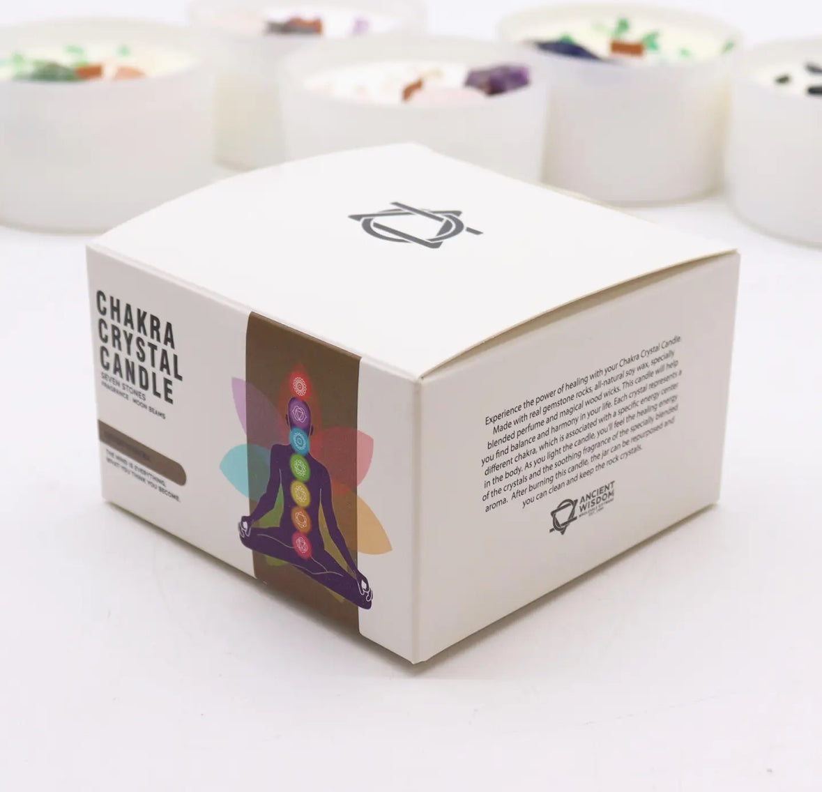 Light this candle to create an atmosphere of balance and alignment. Allow the mystical fragrance of "Moon Beams" to soothe your senses and connect you to higher realms, while the energy of seven gemstones resonates with and balances your entire chakra system.