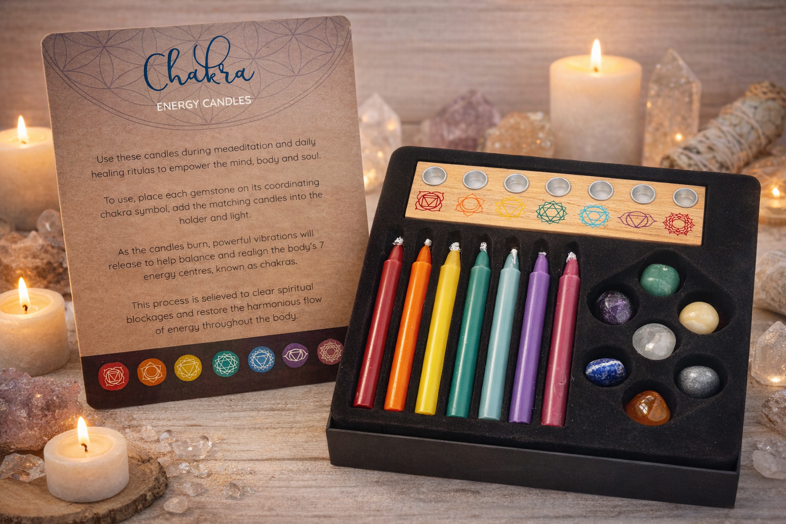 Perfect for meditation and energy healing, this chakra candle and crystal gift set promotes balance and harmony through the combined...