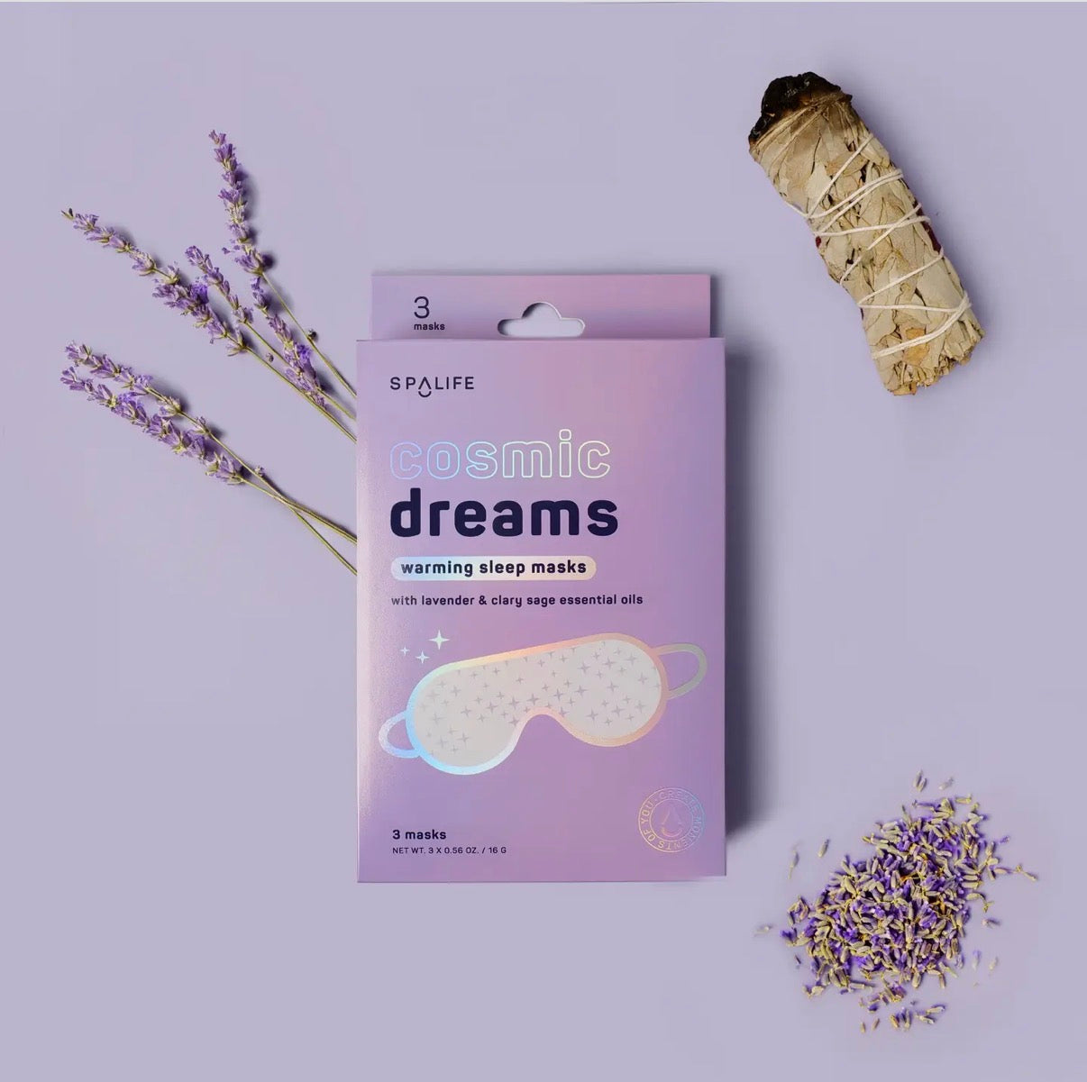 Wind down & set the stage for sweeter dreams with this ultra-comfy warming eye mask. Infused with soothing lavender & sage for an aromatic calming effect, this mask helps eliminate stress & ease tension while you relax.