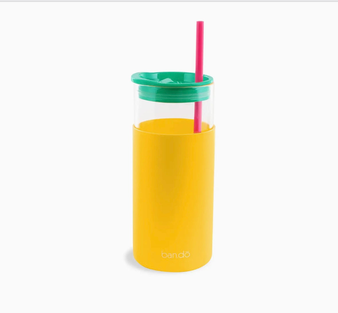 Drink up! This glass tumbler comes with a plastic slide lid, silicone straw, and soft silicone sleeve. Drink using the...