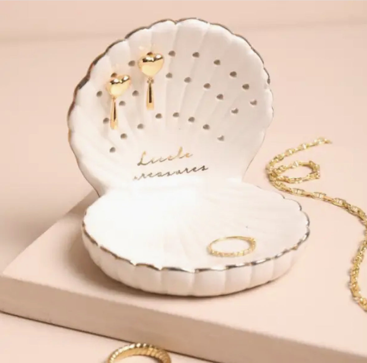 Elegant shell-shaped earring holder and dish Perfect for organising earrings, rings, and small accessories Stylish addition to any vanity or...