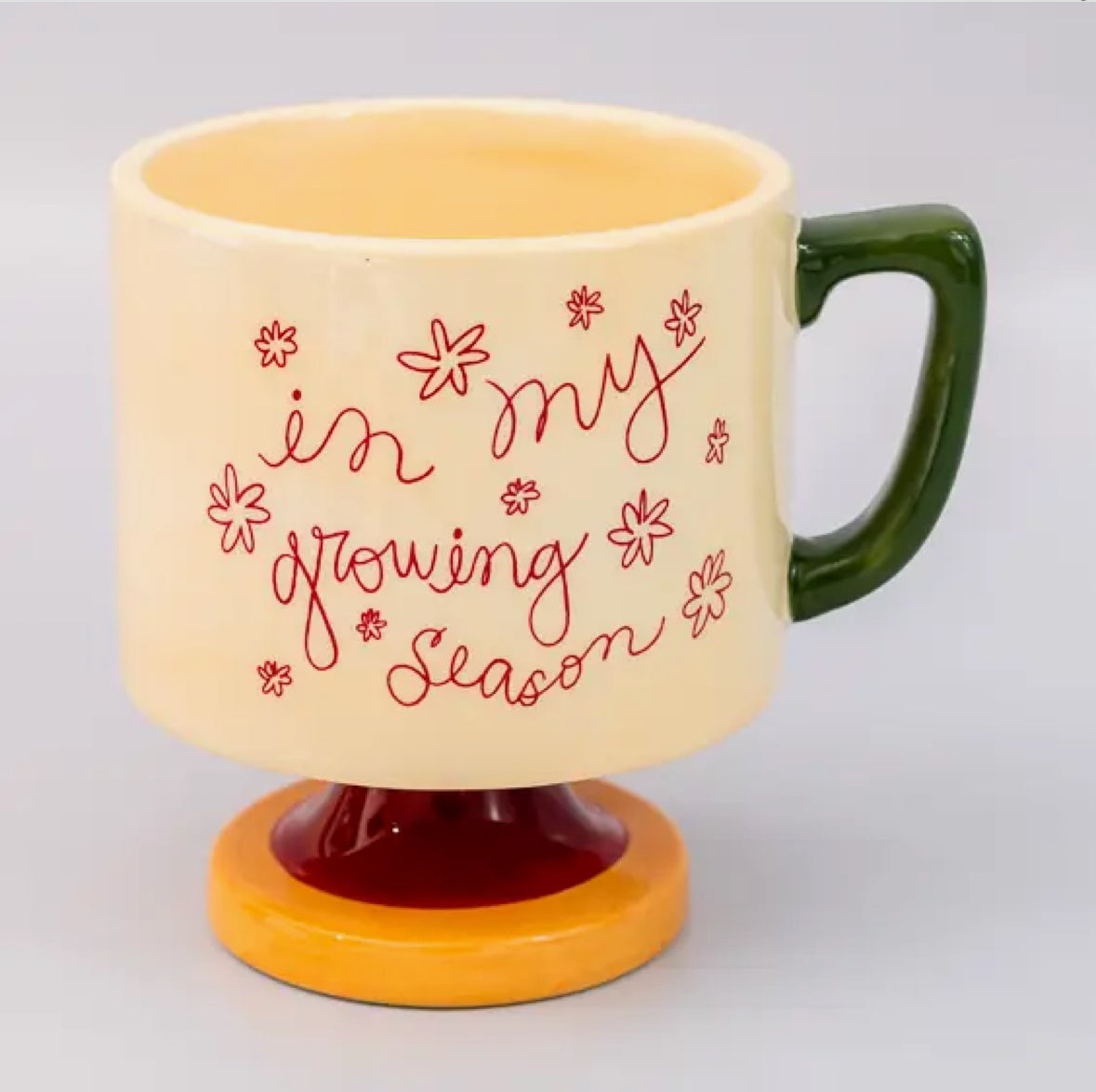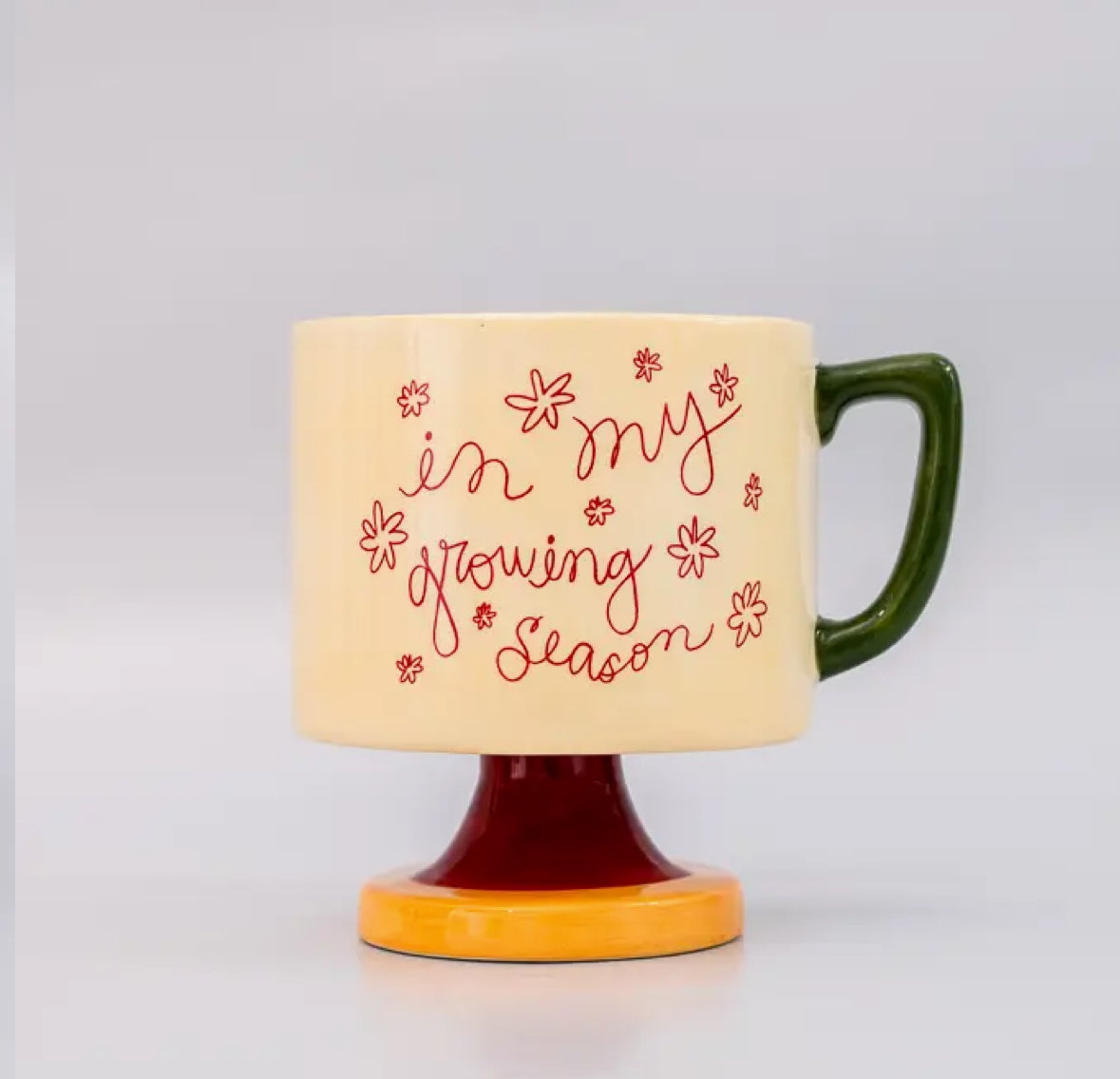 This ceramic one holds 12 oz. and has a vintage-inspired pedestal base.