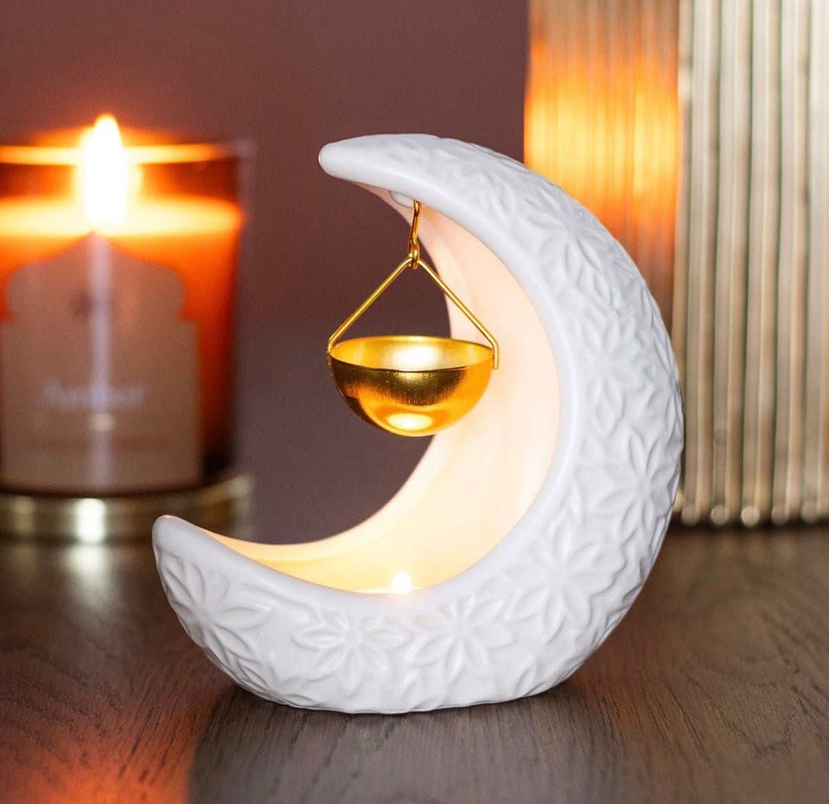 This enchanting white crescent moon oil burner has been designed to enhance the home with a dreamy, magical midnight atmosphere....
